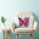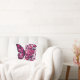 a beautiful bouquet of pink flowers, including large peony-like blooms and other smaller pink flowers. The flowers are surrounded by dark green leaves and accented by a striking, large pink and black butterfly. The overall effect is a vibrant, eye-catching floral arrangement with a touch of whimsy from the butterfly element.