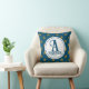 Ce coussin de jet monogrammé est un excellent moyen d'ajouter une touche nautique à la décoration de votre maison. Un motif d'étoile dorée apparaît sur un fond bleu. Votre monogramme et le nom de famille sont présentés dans un cercle central. Personnalisez facilement les couleurs, le nom de famille et l'initiale du monogramme pour répondre à vos désirs.