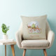 Coussin décoratif "Joyeux Pâques" avec l'image d'un lapin sur un vélo.