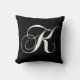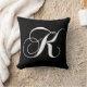 Coussin blanc noir du monogramme K. Cette police élégante de remous transforme votre initiale de monogramme en coussin décoré d'un monogramme élégant de concepteur. Grand pour votre chambre à coucher, chaise préférée, comme décor d'amusement dans votre chambre familiale ou addition décorative formelle à votre salon. Personnaliser avec votre couleur d'arrière - plan. Pour d'autres lettres de l'alphabet entrez en contact avec svp MONOGRAMGALLERY. Elke Clarke©