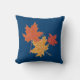 Un coussin assez bleu foncé avec des feuilles d'automne.