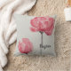 Coussin décoré de pivoines aquarelles. Texte facultatif tel que nom et date de naissance.