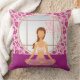 Une fille aux cheveux bruns est assise sur un coussin qui calme son esprit dans un cadre paisible. Les fleurs peuvent être vues à l'extérieur de la fenêtre ronde