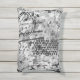 Cet oreiller à lancer présente un abstrait éclectique qui comprend des cercles de rayures zébrées. Les couleurs vont du gris (ou du gris) au charbon de bois en passant par le noir.