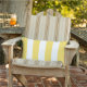Le design simple et élégant des coussins extérieurs comprend un motif de larges bandes verticales de cabane blanches avec un arrière - plan jaune vif. Le design classique s'harmonise avec n'importe quel style de décoration. La couleur Arrière - plan peut être modifiée.