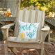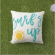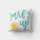 Épinez votre maison de plage, patio ou piscine avec notre oreiller extérieur à l'été! La conception de citation mignonne comporte "surf vers le haut" dans une typographie de style turquoise tropicale vibrante et manuscrite avec une illustration de soleil jaune vif. Le coussin s'inverse aux rayures turquoise et blanche.