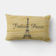 Tour Eiffel Noir Paris sur jaune ocre pâle pastel vert fin rayures motif. Coussin extérieur. Texte : 'J'adore Paris'. Créé avec un sourire de Iolantesdesigns : -) !