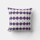 Cet oreiller de lancer a un design art déco d'hexagones blancs avec une ligne noire au milieu et des diamants roses.