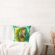 Ce coussin a un dinosaure dessus.