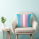 Fun coussin à jeter en rayures bleu clair, rose et blanc pour représenter les couleurs du drapeau transgenre.