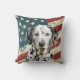Un beau portrait d'aquarelle d'un Chien dalmate est placé contre un arrière - plan grunge du drapeau américain. Les deux côtés du coussin ont la même image.