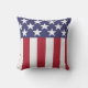 Ce coussin patriotique présente les étoiles et les bandes du drapeau américain en rouge, blanc et bleu.