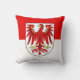 Lancer l'oreiller avec le drapeau de Brandenburg (Brandenburgs), design avec deux bandes de rouge et blanc avec les armoiries de l'état avec l'illustration d'un aigle rouge au centre