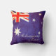 Un style antique unique Advancing Fair drapeau australien coussin dans les tons rouge, blanc et bleu. Conçu en utilisant le drapeau australien et en ajoutant un peu de traitement vintage et du texte. Lit Advancing Fair, ou vous pouvez ajouter vos propres mots jusqu'à 9 caractères. Produit par Sarah Trett. Ça aurait l'air génial dans une chambre ou un salon patriotique.