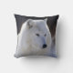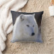 Photographie du loup arctique recadrée à la tête et à la poitrine imprimée sur les bords du coussin.
