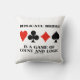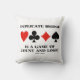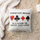 Si vous jouez un pont dupliqué, alors vous savez probablement que "Le pont dupliqué est un jeu de comte et de logique". Faites faire aux autres une double prise à votre prochain jeu de bridge avec une dose d'attitude de pont dupliqué avec ce coussin de lancer avec les costumes de quatre cartes ainsi que ce mot de vérisme de pont!