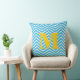 Eau vive et Jaune moderne Monogramme Zig Zag Motif Jeu d'oreiller
