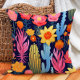 Cette coussin décorative dégage un charme désert éclatant, avec des cactus colorés et des succulents dans les tons vifs de jaune, rose et bleu, accentués par des fleurs orange et rouge audacieuses. Placé face à un arrière - plan de marine, le design animé crée un contraste saisissant, ce qui en fait un endroit parfait pour ajouter une pop de couleur audacieuse à n'importe quel espace. Idéal pour un décor éclectique, boho ou d'inspiration sud-ouest.