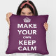 Un modèle d'oreiller jetable dans le style de Keep Calm et Carry On. Le texte de l'espace réservé indique Rendre votre propre calme. Il suffit de modifier le texte dans les zones à droite de l'image et vous pouvez changer le message pour dire ce que vous voulez. Vous n'êtes plus limité à ce que vous pouvez trouver sur le marché - votre imagination est la seule limite! Dans le violet, la couleur peut être customisée en appuyant sur "Customiser plus loin" > Éditer > Arrière - plan.