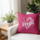 Coussin Écriture aimée du coeur rose moderne