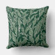 Ce coussin a un design moderne et sophistiqué avec un motif en feuilles naturelles dessiné en blanc sur un arrière - plan vert.