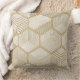 A seamless geometric pattern throw pillow featuring a refined grid of hexagonal shapes outlined in metallic gold. Each hexagon contains intricate designs such as parallel lines, cross-hatching, and abstract geometric motifs. The background blends soft cream and beige tones with a subtle marble-like texture, creating a sophisticated, luxurious aesthetic.