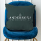 Un coussin moderne et élégant avec votre nom de famille présenté dans la typographie classique associé avec écriture manuscrite en blanc sur une magnifique couleur vert foncé de la forêt. Un design élégant et minimaliste pour se démarquer de la foule en cette saison de noël !