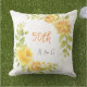 Coussin Élégant Monogramme Fleur Jaune Mariage 50e