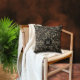 Coussin Élégant Monogramme Floral Noir Argent