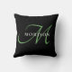 Coussin Élégant Monogramme moderne noir vert Script