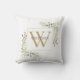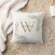 Elégant aquarelle eucalyptus vert nom de monographie jetez l'oreiller avec une initiale en or monogramme. Conçu par Thisisnotme©