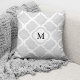 Élégant oreiller à lancer Motif monogramme gris Quatrefoil