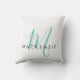 Coussin Élégant Turquoise de script blanc moderne Monogram