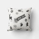 Un oreiller à lancer avec une répétition transparente en noir/blanc des éléments de Noël - bas, gingerbreadman, flocons de neige, rennes, ornements de Noël, bougies, sapin de Noël et les mots "Joyeux Noël" - en illustration. Il peut convenir à des occasions solennelles de Noël.