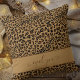 coussin Empreinte de léopard. Design poster de animal tendance et toujours populaire en marron et noir, sur les deux côtés et personnalisée avec votre nom sur le devant.