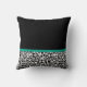 Personnalisez en ajoutant le nom de n'importe quelle fille à ce carré empreinte de léopard à la mode noir et blanc jetez l'oreiller avec un ruban vert émeraude ceint dans un joli arc. Ce design poster de animal élégant est une image à impression plat, et ne contient pas de ruban réel.