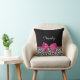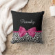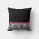 Un empreinte de léopard noir et blanc branché lance l'oreiller avec un ruban rose foncé et vivace attaché à un joli arc de cercle. Personnalisez ce motif animal chic et élégant en ajoutant le nom de votre ado. Impression plane, pas ruban réel.