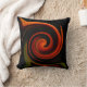 Cet oreiller décoratif à jets dispose d'un motif circulaire à bulles aux couleurs brillantes de rouge, orange, vert, jaune, marron et noir. Le design abstrait est une vision impressionniste de l'énergie tourbillonnante de la création.