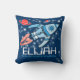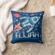 Coussin pour les garçons, chambre d'espace pour enfants ou salle de jeux. Personnalisez avec votre nom jusqu'à 6 lettres. Cet exemple dit : "Elijah" Parfait pour le fils qui est un explorateur d'espace en herbe ou une étoile d'astro. Graphique réalisé par Sarah Trett.