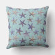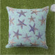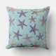 Estarfish dans l'oreiller à lancer Turquoise de sable. Chic étoile de mer turquoise bleue, violette, taupe, grise et brune dans l'eau peu profonde à 2 échelles différentes. Plus grande à l'avant et plus petite à l'arrière. Extérieur, intérieur, Océan, bord de mer, nautique, maison inspirée de maison de plage, et décor divertissant.