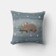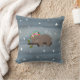 Un coussin avec un design sur le thème des bois avec une illustration d'un bébé ours allongé sur une branche d'arbre entouré d'un arrière - plan et d'étoiles bleus inspirés de l'aquarelle. Personnalisez le nom. L'ours porte une couronne de fleurs.