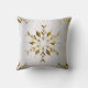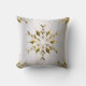 Un élégant coussin de Noël avec un motif d'étoiles dorées ressemblant à des flocons de neige dorés sur un arrière - plan gris/argenté.