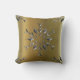 Un élégant coussin de Noël orné d'un motif d'étoiles d'argent ressemblant à des flocons d'argent sur un arrière - plan d'or.