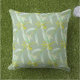 Coussin d'art feuille à l'aquarelle d'origine eucalyptus. Joli coussin feuilles et bourgeons dans les tons vert motif répétitif. La couleur Arrière - plan peut être changée si nécessaire en gris-vert. Peinture d'aquarelle originale et design motif par Sarah Trett. www.sarahtrett.com pour www.mylittleeden.com