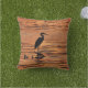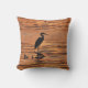 Ce coussin extérieur comporte un héron de grand bleu (herodias d'ardea) en silhouette, pêchant dans les eaux peu profondes du lac Cayuga dans Ithaca, NY qui est l'un des lacs finger de New York hors de la ville. Un beau coucher du soleil orange, jaune et d'or colore les vagues et les ondulations dans un motif abstrait.