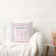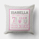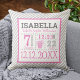 Oreiller de faire-part de naissance de bébé fille rayé rose et gris adorablement mignon avec un éléphant de bébé rose doux. Modifiez pour inclure tous les détails de naissance de votre précieux paquet de joie.
