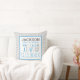 Oreiller de faire-part de naissance adorablement mignon avec des rayures bleues, grises et blanches pour un petit garçon avec un petit éléphant bleu doux. Modifiez pour inclure tous les détails de naissance de votre précieux paquet de joie.