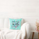 quatre-vingt-dixième Le coussin d'anniversaire avec le lettrage noir personnalisable sur la conception abstraite de petits carrés et l'aqua colorent l'arrière - plan (personnalisable). D'autres modèles dans rose et pourpre disponible. Livre et plus d'invité assorti d'anniversaire…