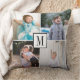 Faites votre propre collage photo et monogramme personnalisé Throw Pillow. Ce coussin moderne affiche un collage de quatre photos de famille et votre monogramme sur le devant et quatre photos différentes sur le dos. Au centre il y a un cadre avec votre monogramme. Il suffit de changer les images et le monogramme pour créer le vôtre ! Photographie © Storytree Studios, Stanford, CA