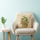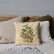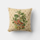 L'oreiller de Jeu de Plat présente une illustration botanique vintage de champignons, de fleurs et d'une variété de feuilles sur un arrière - plan crémeux de pêche et d'arlequine d'or.